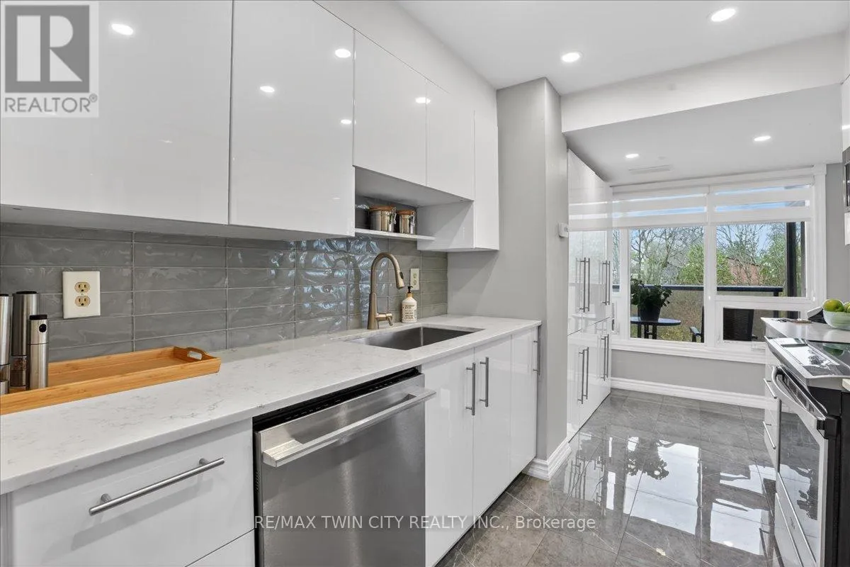 Absolutely stunning, large corner unit in desirable Kressview Springs condominium, located near picturesque Riverside Park and the Speed River in Cambridge – Preston area. Beautifully renovated 2 bedroom 2 full baths, impressive open concept Living/Dining, Kitchen with abundance of windows, flooded with natural light and great views from every room allowing you to enjoy green spaces and wild life year-round.