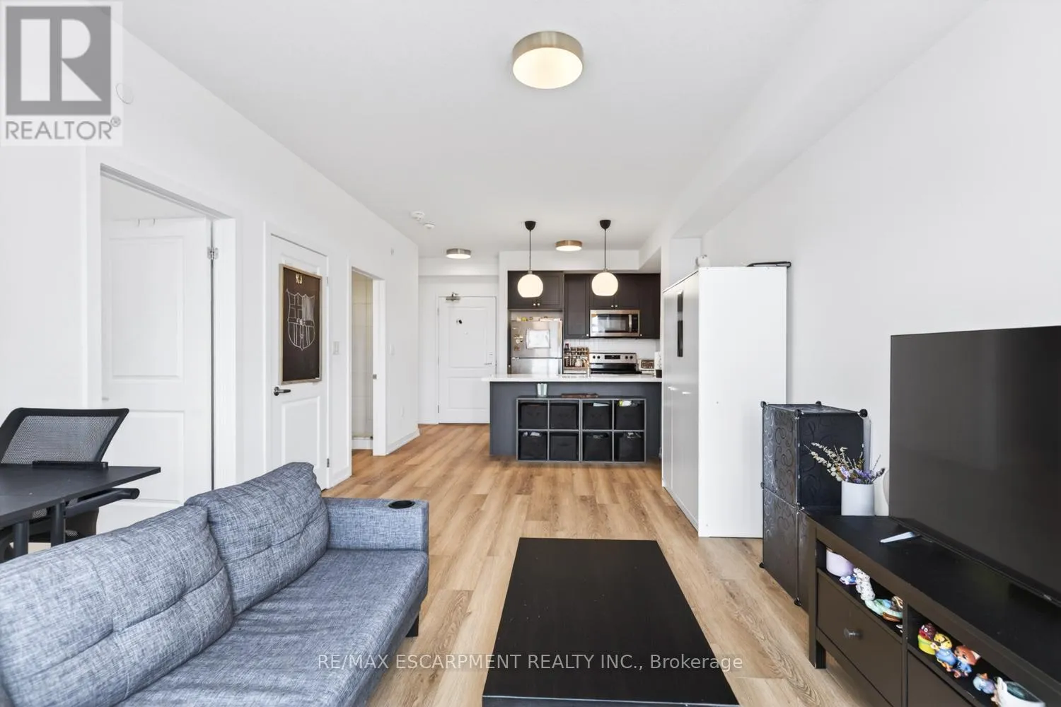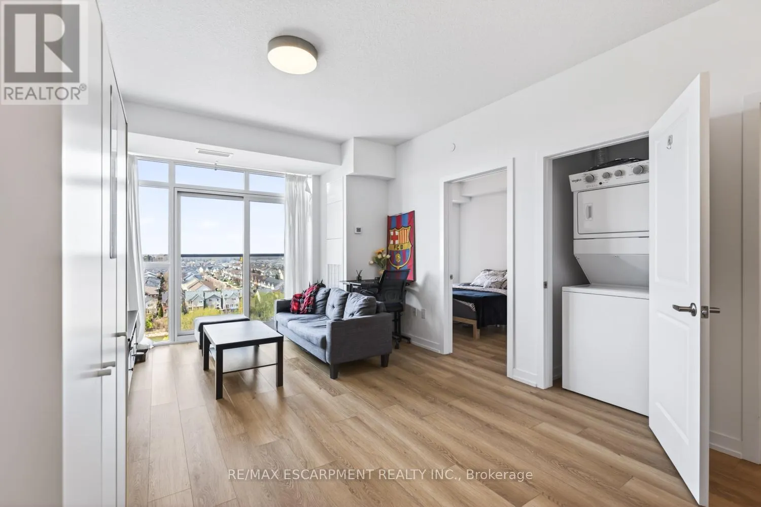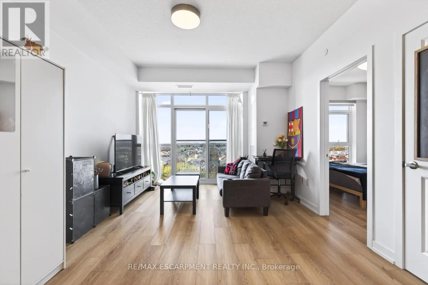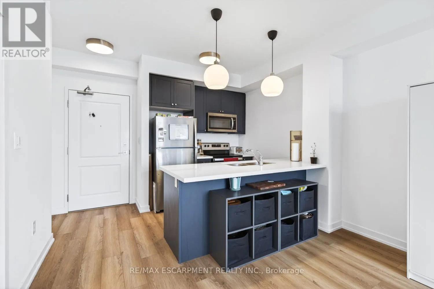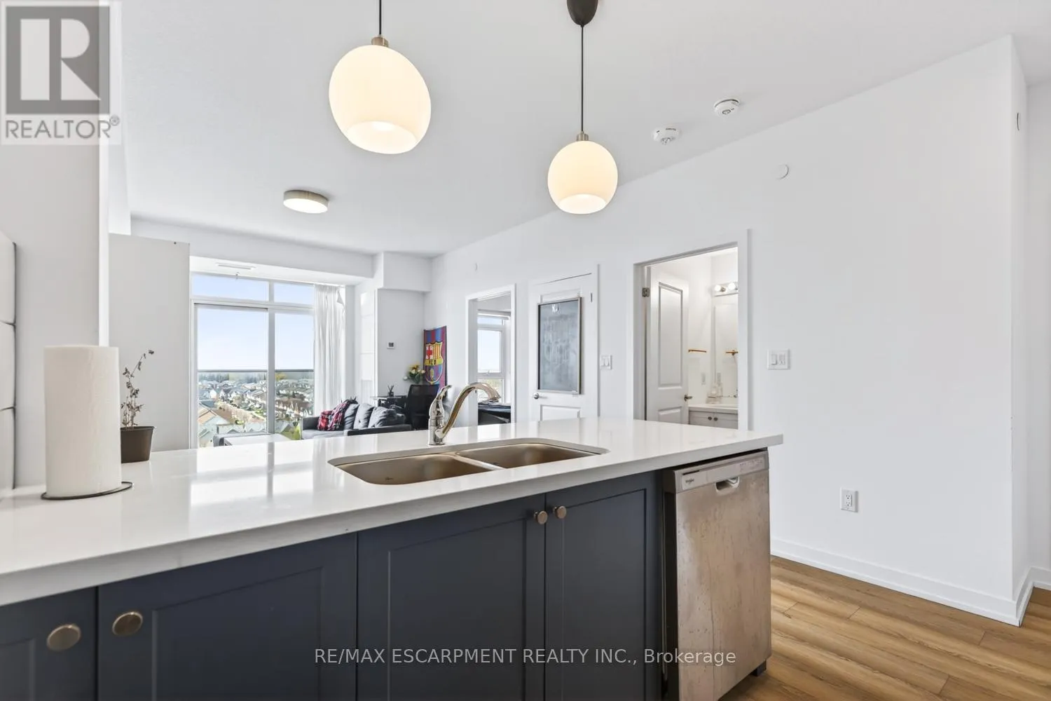 Stunning 1 bed, 1 bath condo showcasing a bright, open-concept design with modern finishes throughout. Featuring an upgraded kitchen with stainless steel appliances, a spacious island with built-in storage, and elegant pendant lighting, this unit flows effortlessly into the sun-filled living area with expansive windows and beautiful views. The generous bedroom is complemented by a contemporary 4-piece bath and convenient