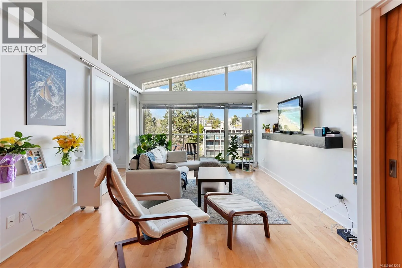 TOP-floor LOFT-STYLE condo built in 2003. This bright and airy home features vaulted ceilings, abundant natural light, and hardwood floors throughout, creating an open and inviting living space. The well-appointed kitchen offers a bartop island, and an open concept floor plan ideal for everyday living and entertaining. The spacious living area flows seamlessly, making the most of the natural light
