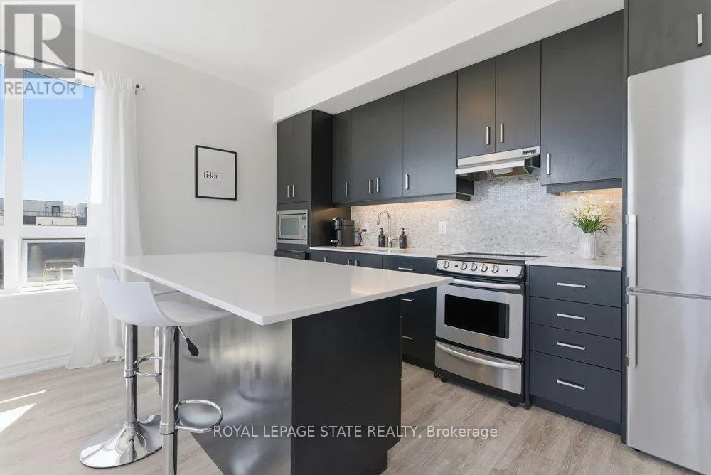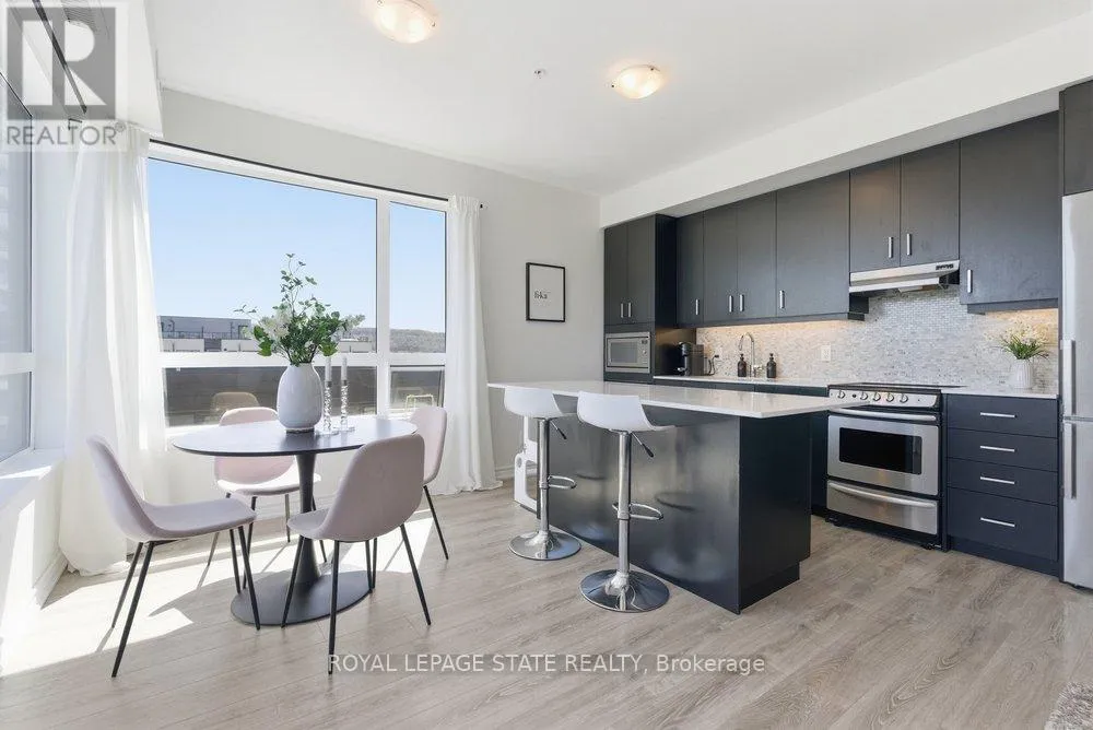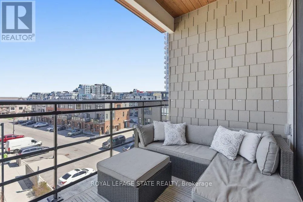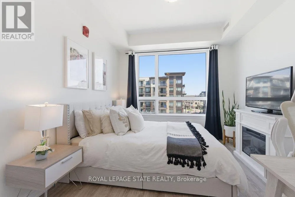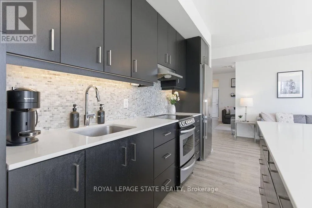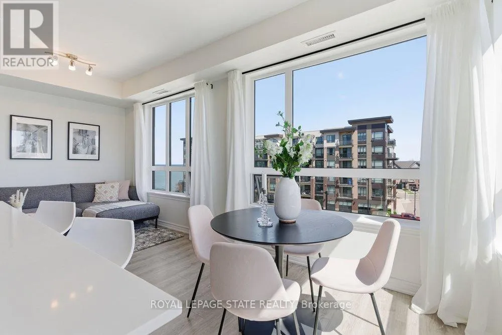 Welcome to Unit 406 at beautiful Lake House condo in the heart of Grimsby-On-The-Lake, offering the perfect blend of modern living and waterfront lifestyle. This bright, open-concept suite features a stylish kitchen with quartz countertops, sleek cabinetry, stainless steel appliances, and a large island with seating, seamlessly flowing into the living and dining areas. Expansive windows fill the space with