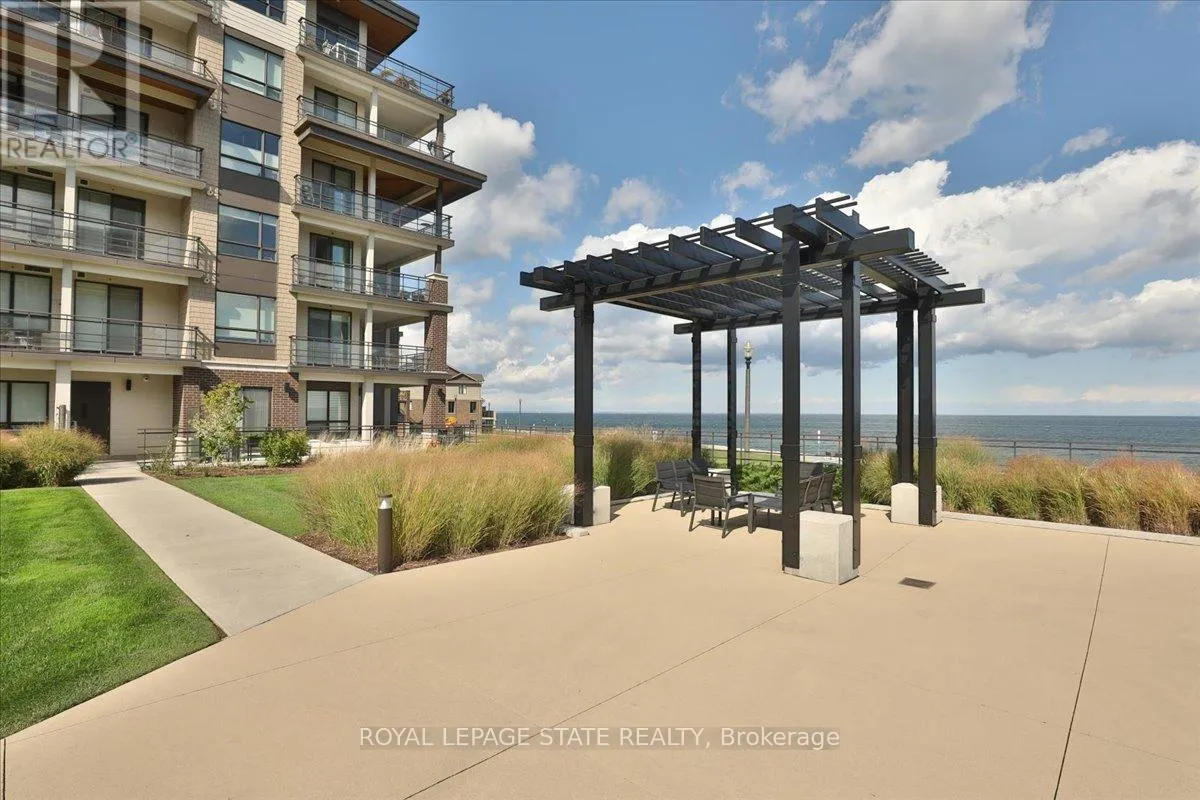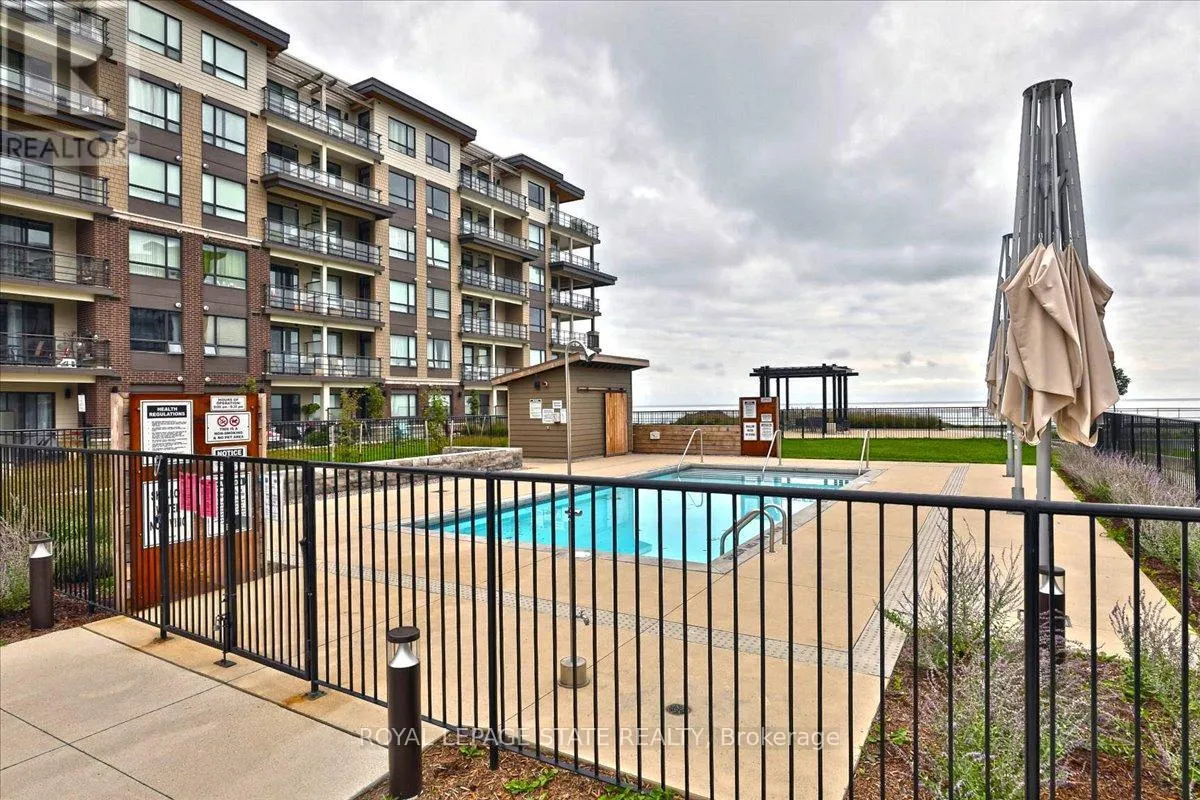natural light and views of the lake and vibrant community. Sit back and relax on your choice of 2 stunning covered balconies, one facing south, one facing east. The unit offers well-sized bedrooms, including a primary retreat with ample closet space, along with a modern 3-piece bath. Thoughtfully designed with neutral finishes and quality flooring throughout, this home is truly move-in ready. Residents enjoy access to impressive building amenities including a pool, party room, fitness area, and outdoor spaces. Just steps to Lake Ontario, waterfront trails, parks, cafés, restaurants, and all amenities, with easy access to the QEW-this is low-maintenance lakeside living at its best. (id:62650)