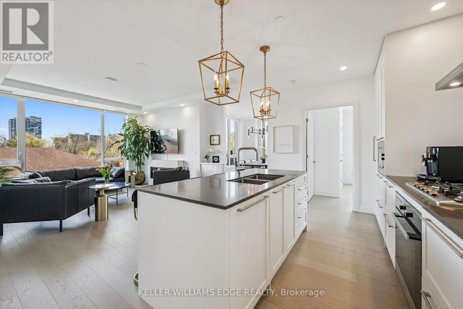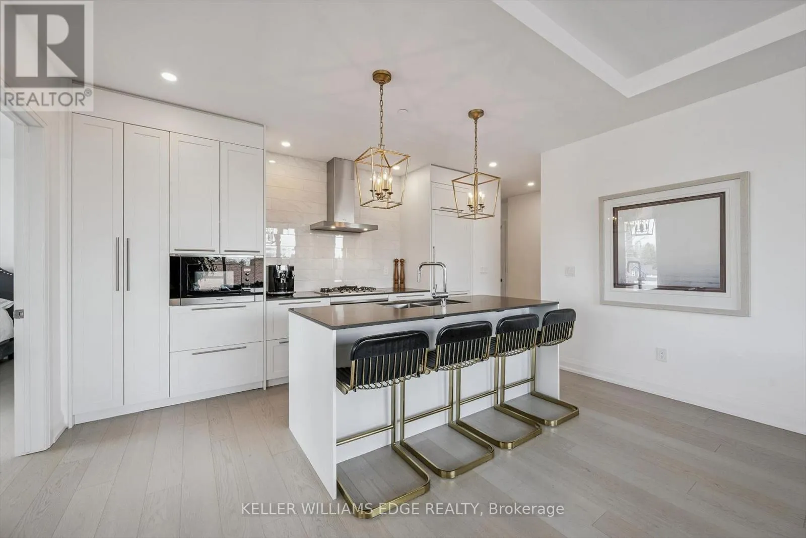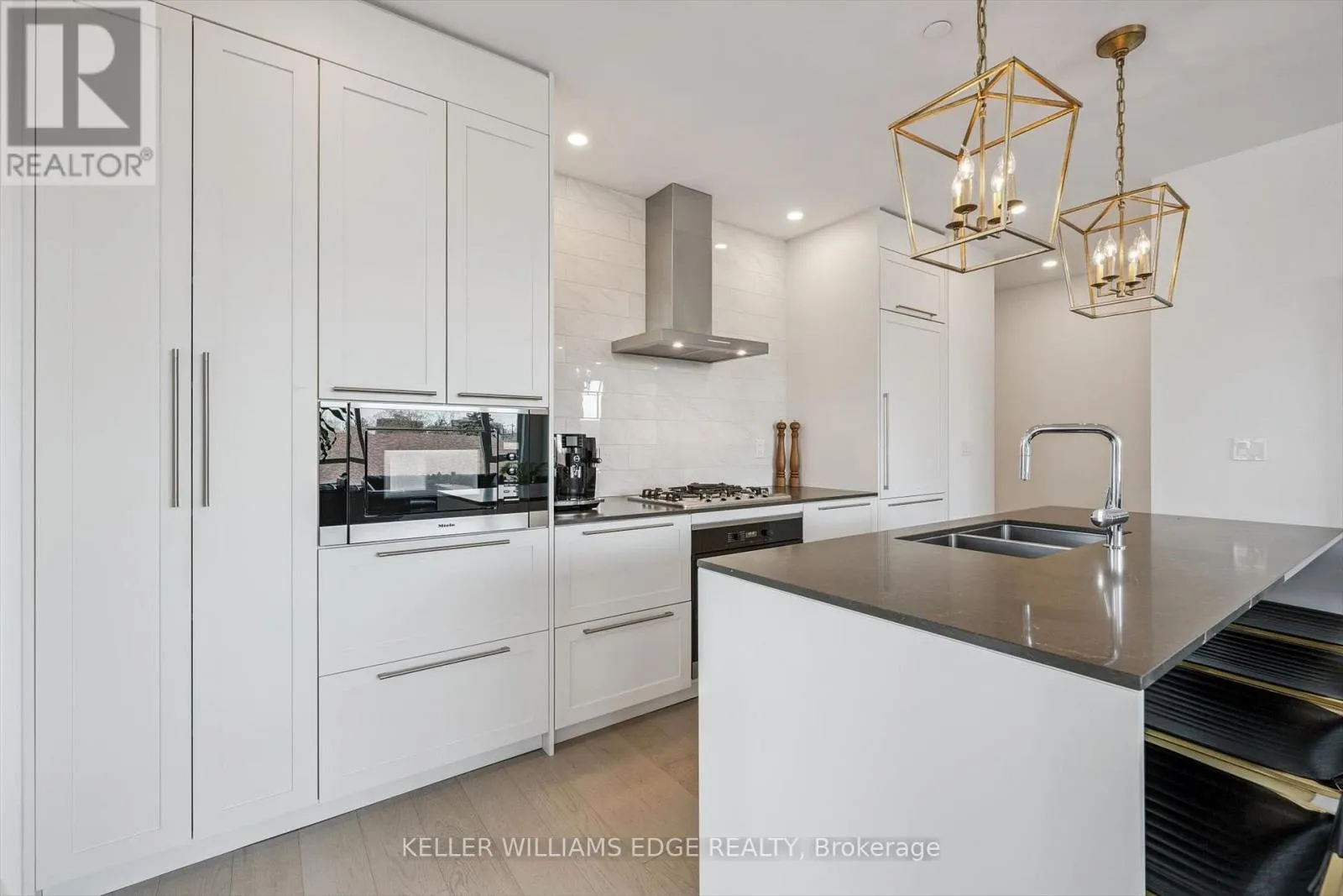 Exceptional 2-bed + den, 2-bath corner suite in the boutique Saxony Condo, an exclusive 6-storey residence in the heart of downtown Burlington. Beautifully maintained and recently painted, this suite features 9-foot ceilings and wide plank hardwood flooring throughout. The chef-inspired kitchen offers floor-to-ceiling cabinetry, Caesarstone countertops, a generous island with breakfast bar, and premium Miele appliances including a gas cooktop,