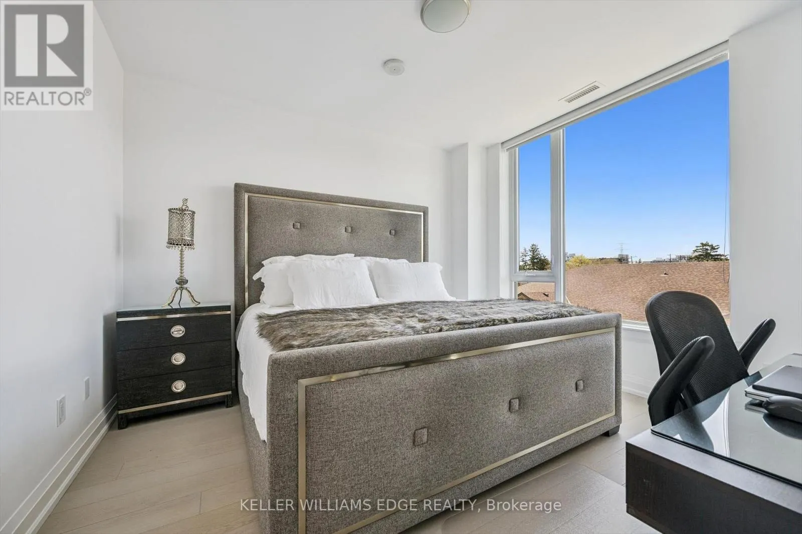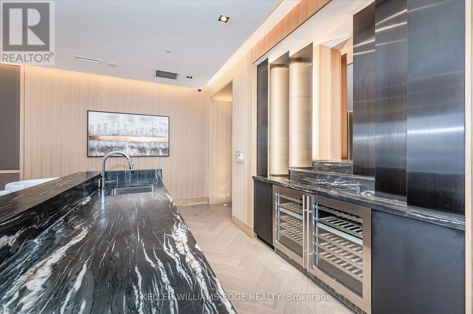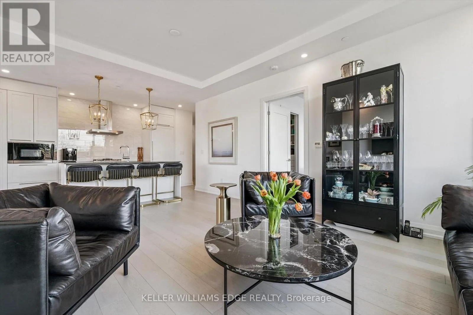 Exceptional 2-bed + den, 2-bath corner suite in the boutique Saxony Condo, an exclusive 6-storey residence in the heart of downtown Burlington. Beautifully maintained and recently painted, this suite features 9-foot ceilings and wide plank hardwood flooring throughout. The chef-inspired kitchen offers floor-to-ceiling cabinetry, Caesarstone countertops, a generous island with breakfast bar, and premium Miele appliances including a gas cooktop,