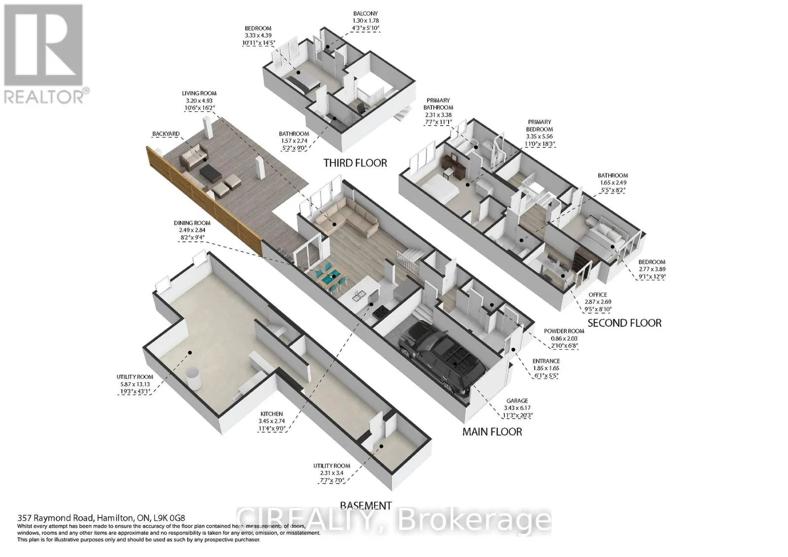 Welcome to this stunning, recently built executive townhome in the heart of Ancaster with a single-car garage. The main floor offers bright, open-concept living with a chef’s kitchen featuring stainless steel appliances, quartz countertops, a peninsula with seating, and modern dark cabinetry. Enjoy the professionally upgraded deck, perfect for relaxing or entertaining, plus a convenient 2-piece bath and garage access.