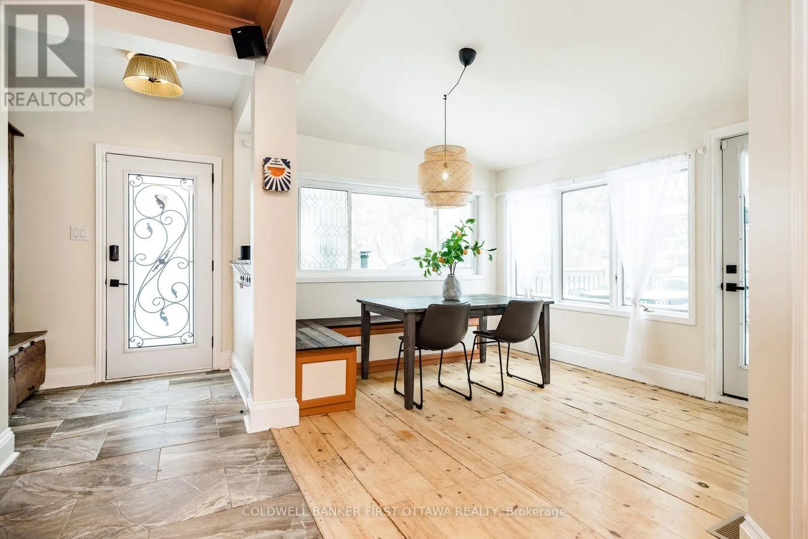 Step into this beautifully restored century home, where timeless character meets modern comfort in the most inviting way. From the moment you arrive, the welcoming front porch and charming curb appeal set the tone for a home filled with warmth, personality, and thoughtful design. The foyer features a custom wood closet and opens into a bright, sun-filled main level, where