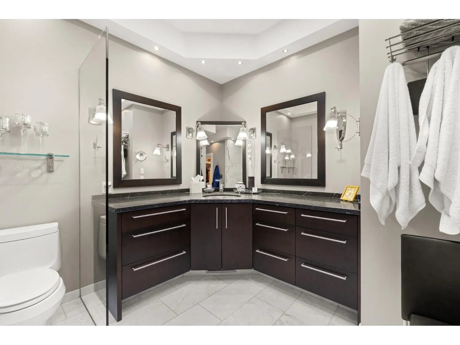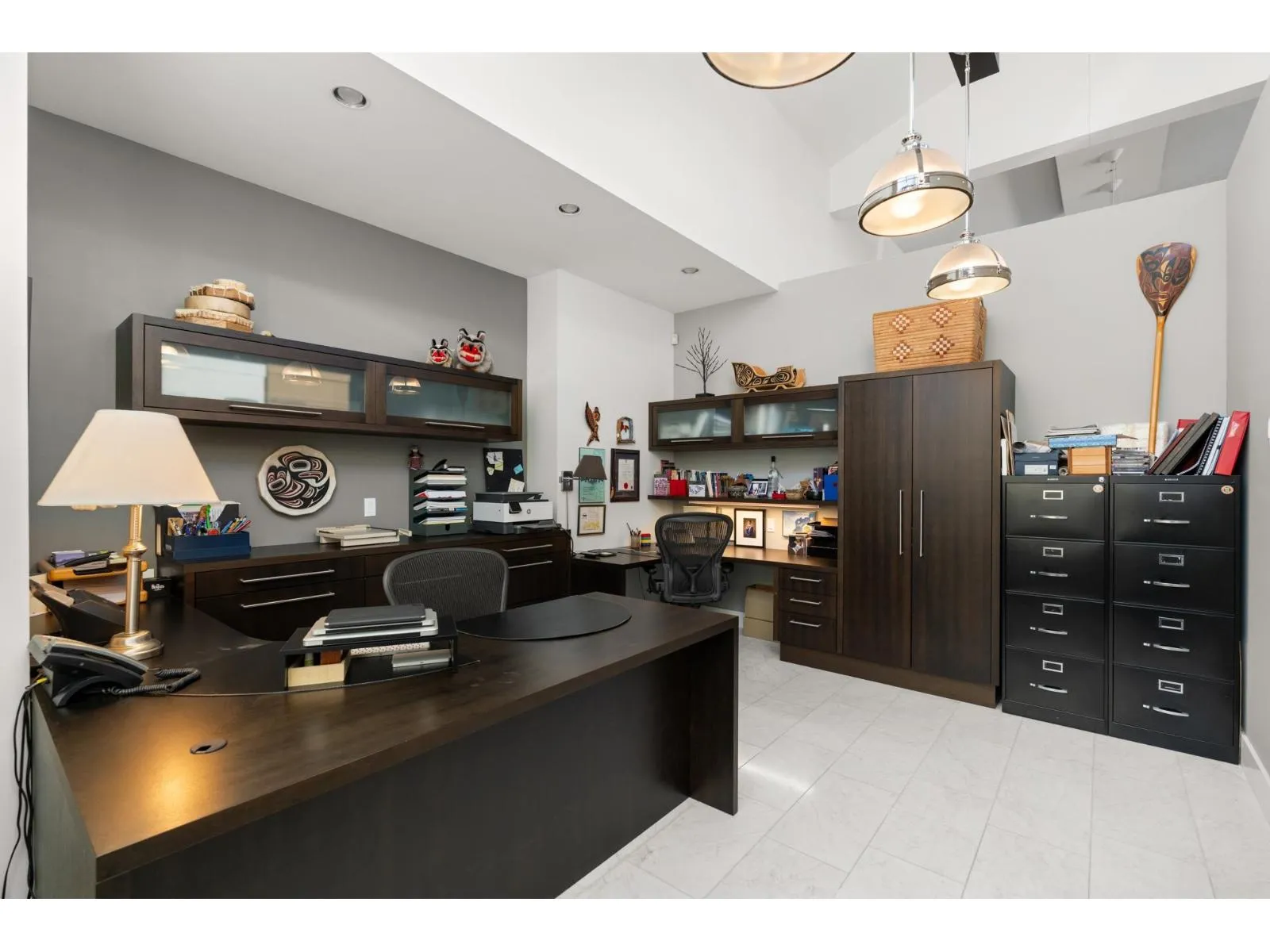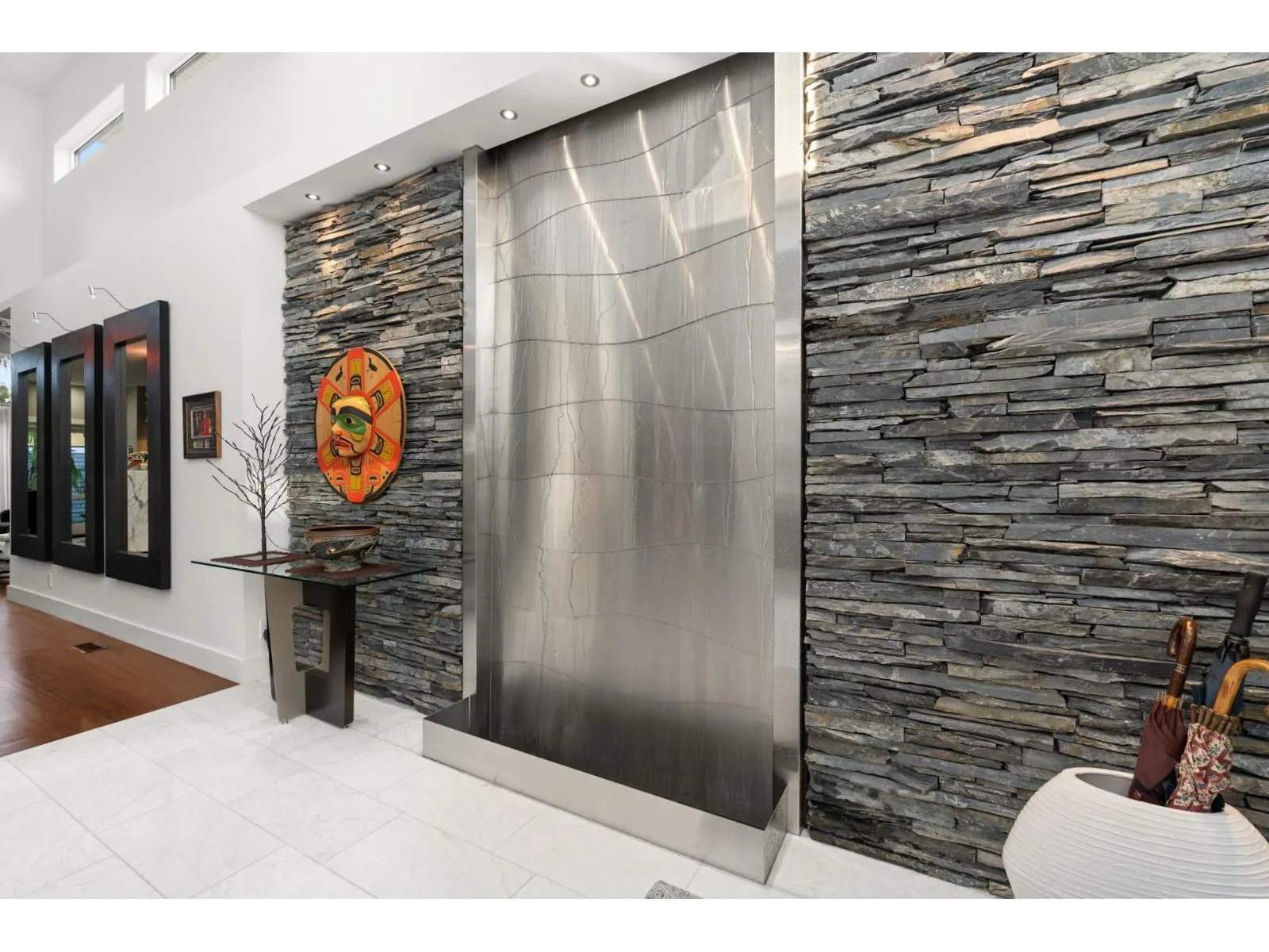 AN INCREDIBLE RARE OFFERING – Custom-built ranchers of this caliber are exceptionally hard to find. This spectacular three-bedroom plus office residence (easily a 4th bedroom) blends architectural drama with refined luxury, highlighted by soaring 16 foot ceilings, statement water features both inside and out and exquisite high-end finishing’s throughout. Designed for those who value true craftsmanship, the home showcases countless
