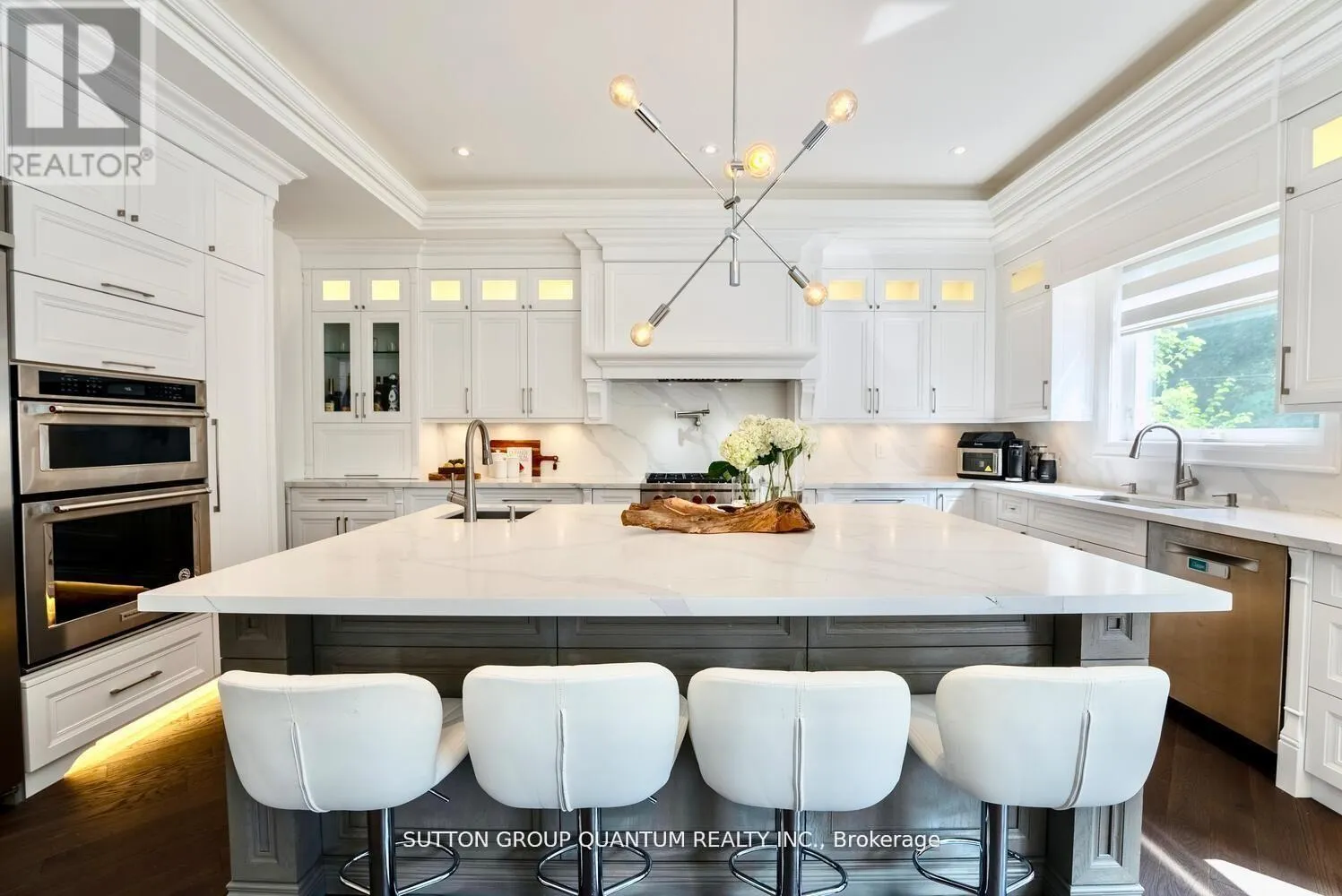 Experience unparalleled luxury in this exquisite custom-built home, completed in November 2020. Spanning around 5,000 sq ft, this residence features soaring 10-foot coffered ceilings and a unique walk-up basement apartment with its own kitchen and laundry perfect for an in-law or nanny suite. Step inside to a welcoming 24-foot foyer filled with natural light, complemented by elegant glass railings and