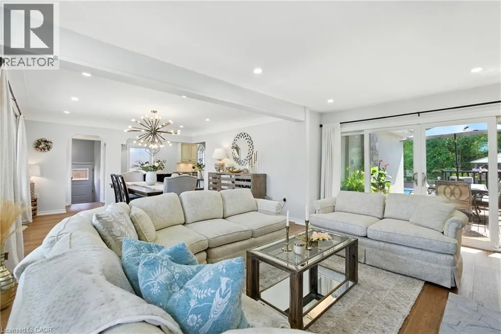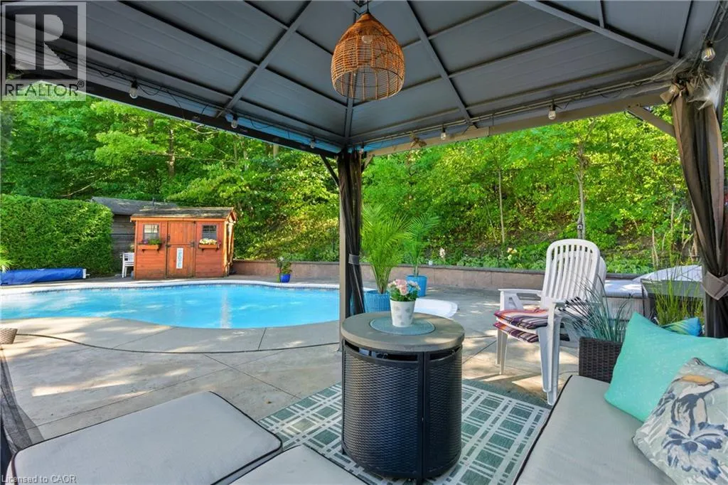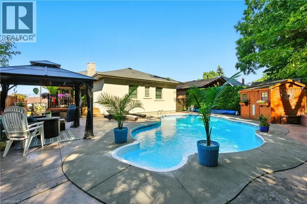 Move in now and enjoy your pool all summer long! Nestled at the base of the escarpment, this beautifully renovated bungalow offers breathtaking views and a private backyard retreat designed for entertaining. The main floor features wide-plank hardwood floors and pot lights throughout, creating a bright, modern feel. The open-concept living and dining area showcases a decorative fireplace, statement chandelier,