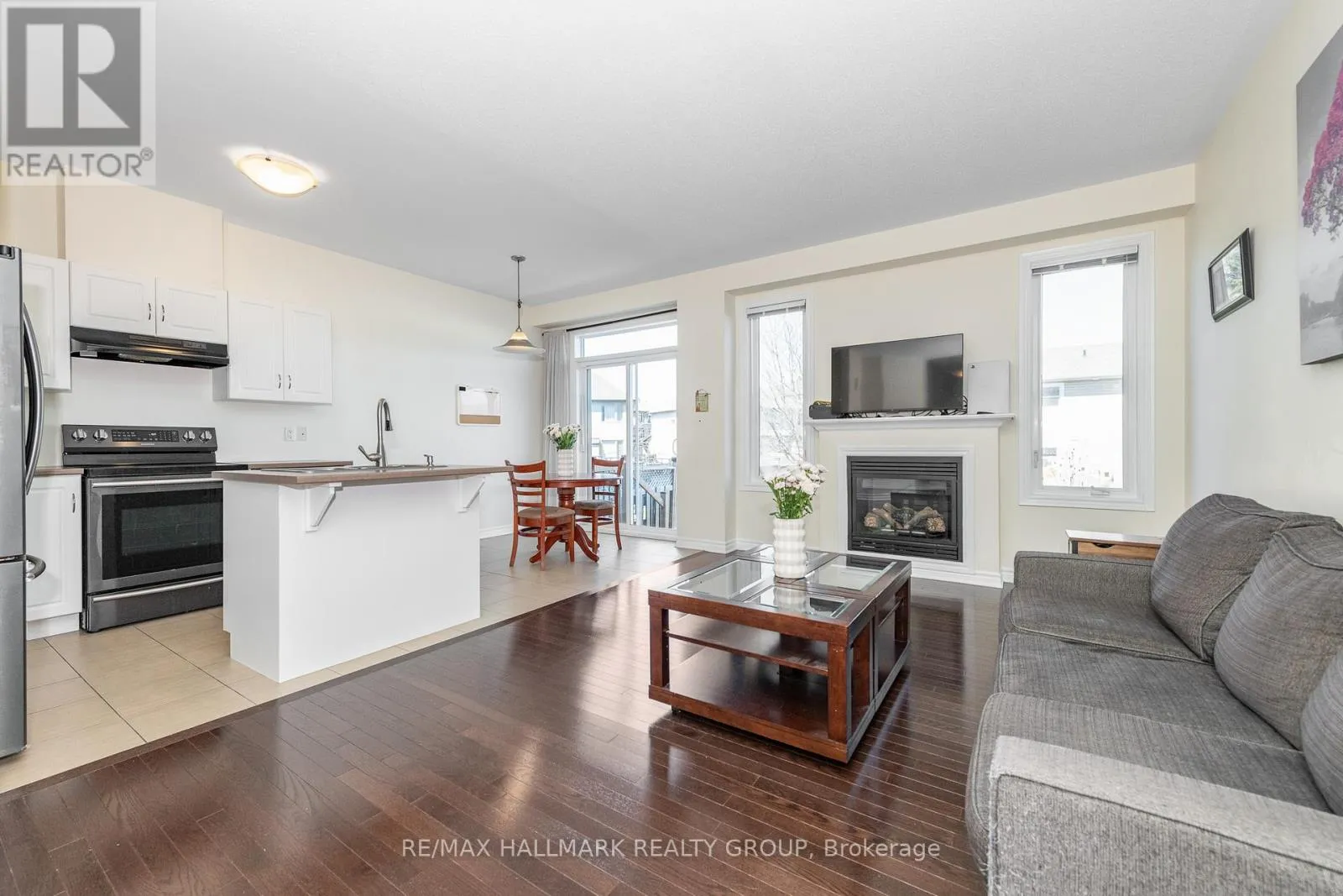 Tucked away in a quiet enclave of family-oriented homes in Barrhaven, this beautifully maintained three-bedroom row-unit townhome offers the perfect blend of comfort, functionality, and modern style. The inviting, neutral décor creates a warm atmosphere throughout its open-concept main level, where the living, dining, and kitchen areas flow seamlessly together-ideal for entertaining and everyday living. A cozy gas fireplace anchors