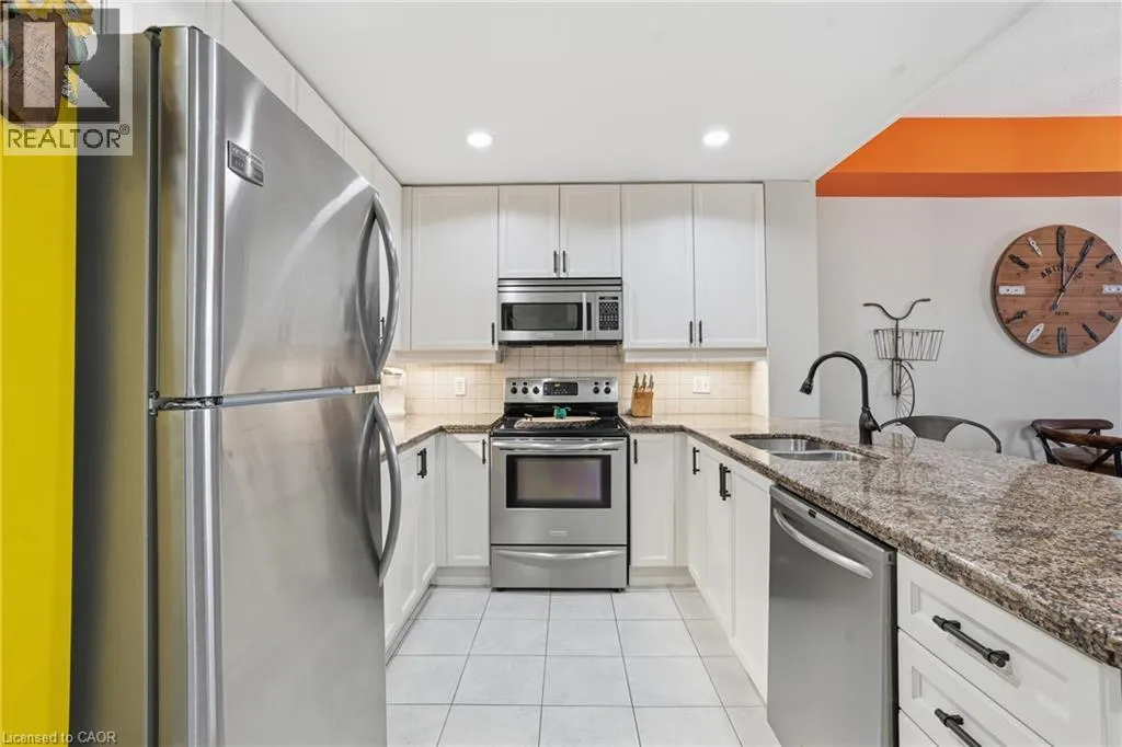 Welcome to this bright and beautifully maintained 2 bedroom, 2 bathroom condo in the heart of Aldershot. Offering 1,214 sq. ft. of open-concept living with 9 foot ceilings and an abundance of natural light, this home is the perfect blend of comfort, style, and convenience. The spacious kitchen is designed to impress, featuring granite countertops, quality appliances, pot lighting, and