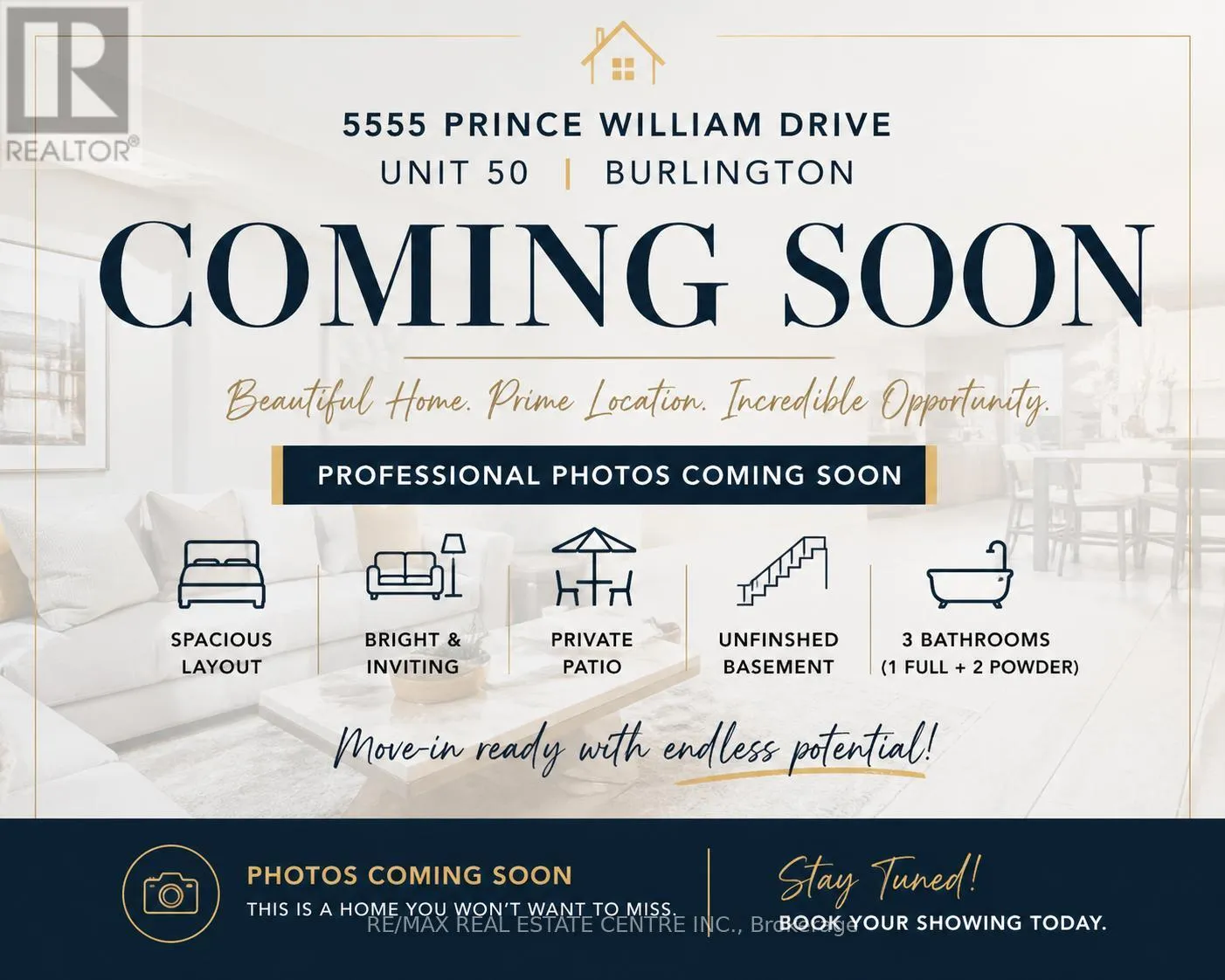 Welcome to 5555 Prince William Unit 50 – an exceptional opportunity to own a beautifully updated condo townhouse in one of Burlington’s most sought-after and family-friendly communities!Freshly painted and move-in ready, this home offers a bright and functional layout designed for comfortable everyday living. The spacious principal rooms are filled with natural light, creating a warm and inviting atmosphere from