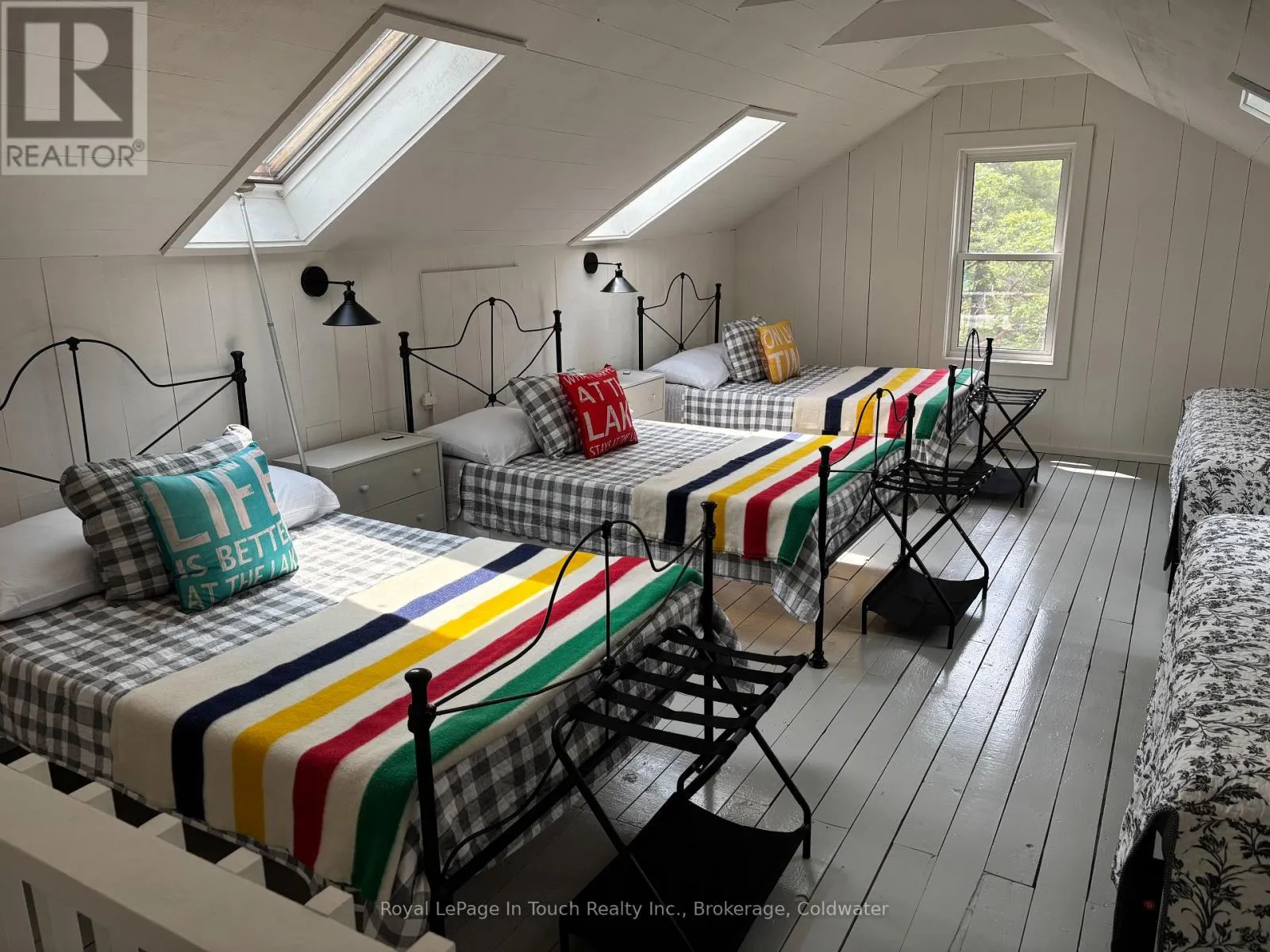 375 Georgian Bay Water is a beautifully maintained cottage in the legacy Georgian Bay style with contemporary features that make holidaying truly relaxing. Offers unobstructed panoramic southwest views of the bay, the original hardwood floors, high ceilings with the original huge, by modern standards, rough hewn beams. five bedrooms, a large screened in porch, perfect for entertaining . Comfortable