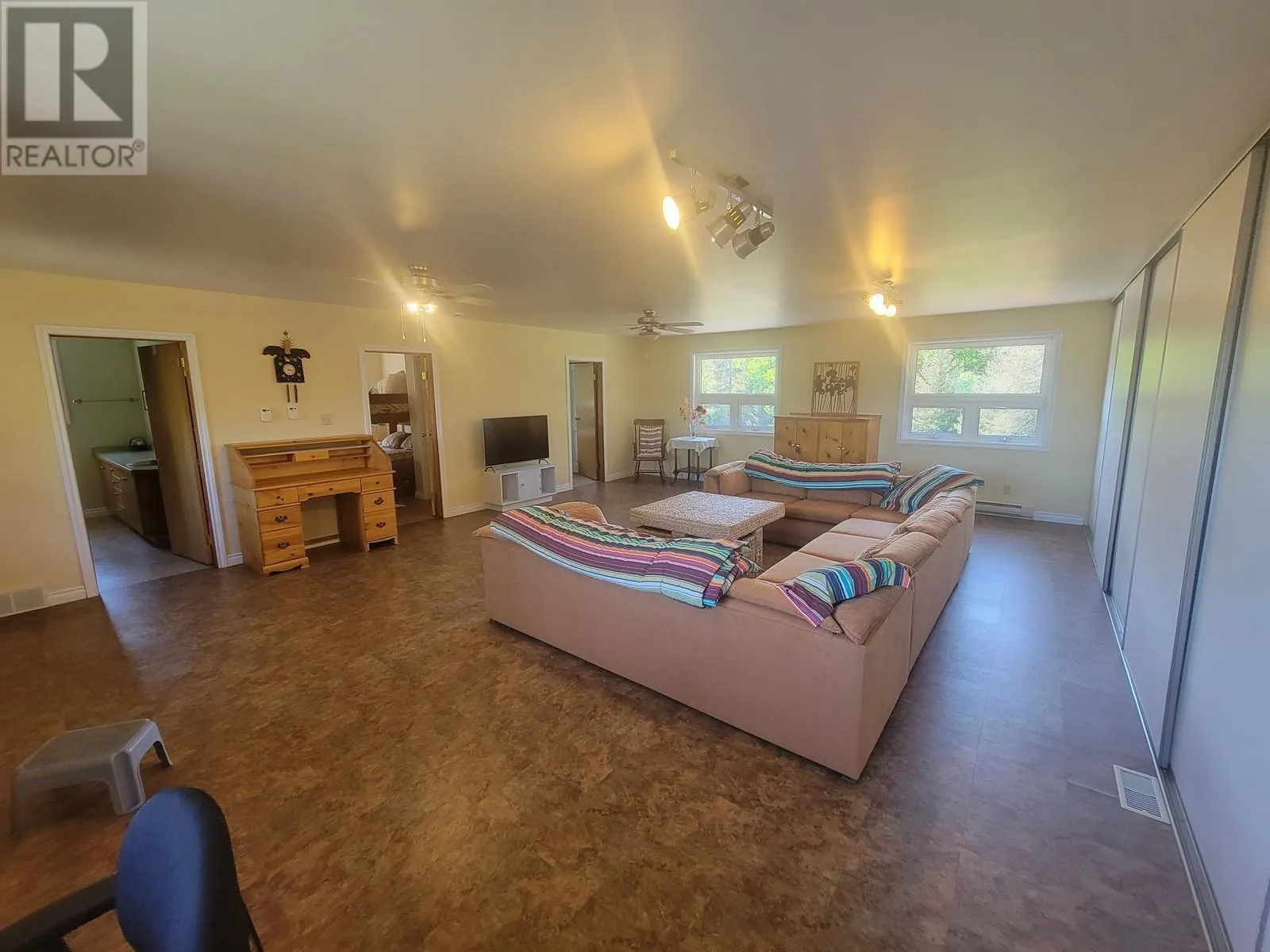 Fall in love with this picturesque rural retreat nestled beside Whitesand Lake, as a forever home, B&B, fishing lodge, or one of many other commercial possibilities! The heart of this custom-built, spacious home is the living room with wood-burning fireplace and full wall of two-story windows offering breathtaking views of the lake. The luxurious primary bedroom with four-piece